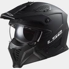 The LS2 Drifter helmet is a versatile open-face helmet that can be used as a street helmet or an adventure-style helmet with its removable chin guard. It features a Kinetic Polymer Alloy (KPA) shell, a multi-density EPS liner, and meets ECE 22.06 safety standards. Key features include a removable and washable inner lining, a drop-down sun visor, and a micrometric buckle closure.