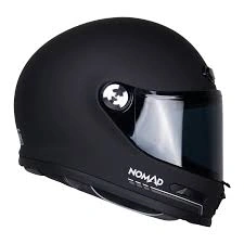 Nomad helmets are a line of motorcycle helmets that are described as having a blend of modern safety features with a retro or vintage aesthetic. Key features across different models include lightweight construction, superior ventilation for long rides, and internal drop-down sun visors for sun protection. Models like the BILT Nomad Modular have an injection-molded shell and a quick-release chin bar for convenience. Other models, such as the Nomad Venturi, highlight unique features like a magnetic removable filter vent.